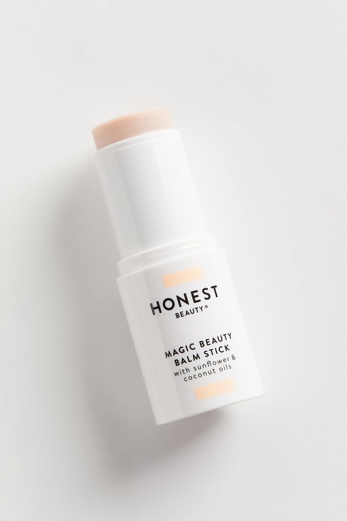 The honest beauty magic beauty balm stick adds a dewy highlight to all skin types.